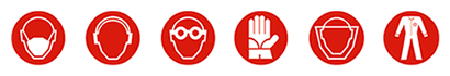 - • Observe sempre a necessidade de utilização dos seguintes equipamentos de proteção individual: Óculos, proteção facial, vestimentas adequadas, capa de proteção, luvas, botas, protetores auriculares e máscaras;